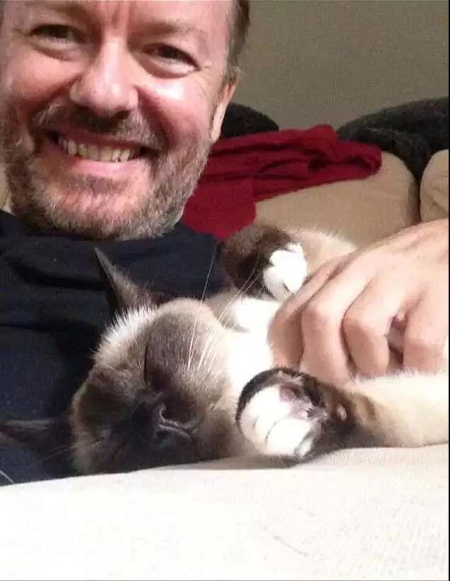 暹羅貓的智商很高,壽命是13年左右,相當于人類91歲高齡。而如果主人懂得愛護它們,甚至能養到20年左右!英國戲劇演員兼導演的瑞奇·熱維斯養了一只漂亮的暹羅貓。因此他也成為了圈內有名的愛貓狂魔!他在每次出門工作時都會一直念叨著家里的貓。在片場與同事閑聊時,話題也永遠都離不開他的“喵星人”。