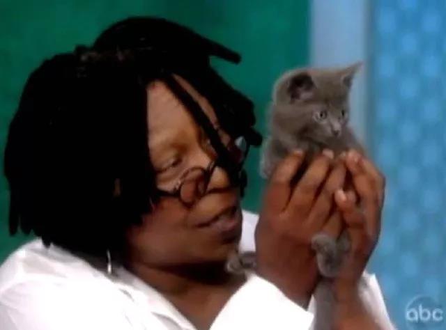 下面這只俄羅斯藍貓名叫“Vinny”,它在紐約被人從汽車車窗中扔出后幸運的得救了,而且還上了電視節目《The View》,走紅于網絡。《人鬼情未了》女星烏比·戈德堡瞬間就被這只可憐的小家伙萌倒了并決定收養它。“Vinny”從此成為了烏比家另一只俄羅斯藍貓“Oliver”的小伙伴。