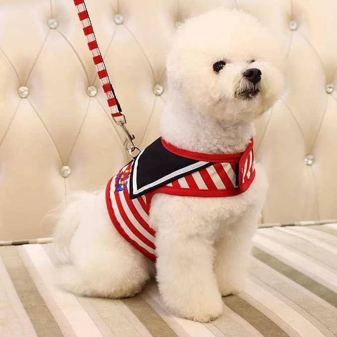 因為狗狗太小,一般來說,在家里訓練,一個項圈加一條牽引繩(狗狗的體型選長短)就足夠了,這樣在狗狗不聽話時,就能馬上加以制止。